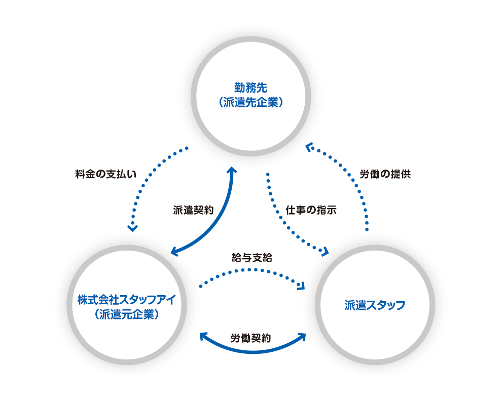 派遣社員にとって、派遣会社は労働契約を結ぶ雇用主、派遣先企業は実際に仕事をする勤務先となります。