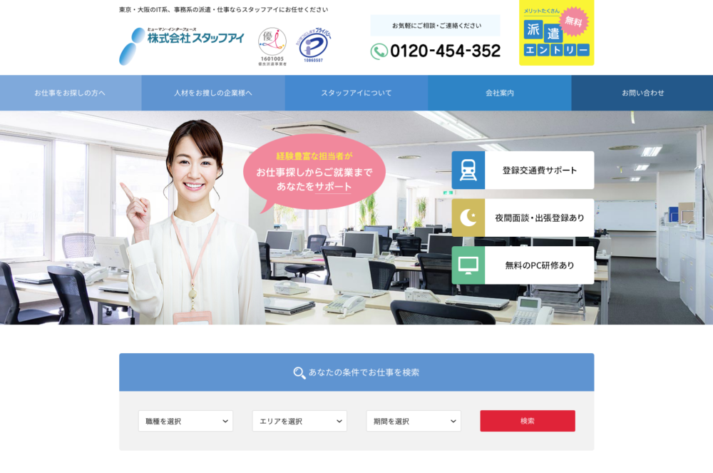 東京・大阪の事務系、IT系の派遣・仕事ならスタッフアイにお任せください